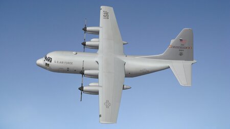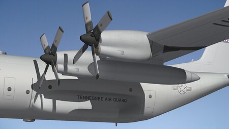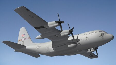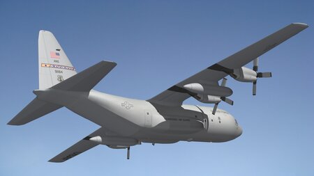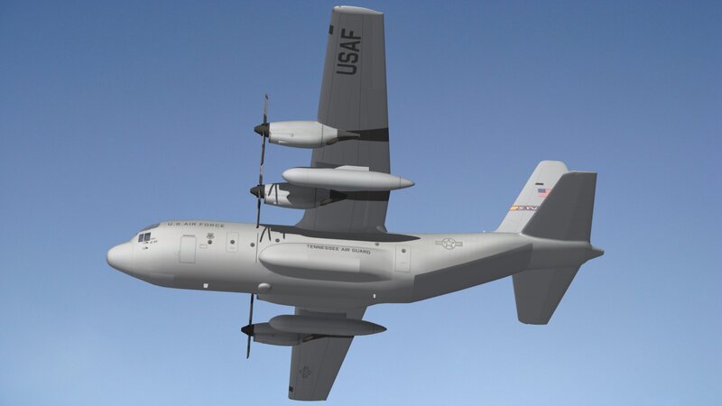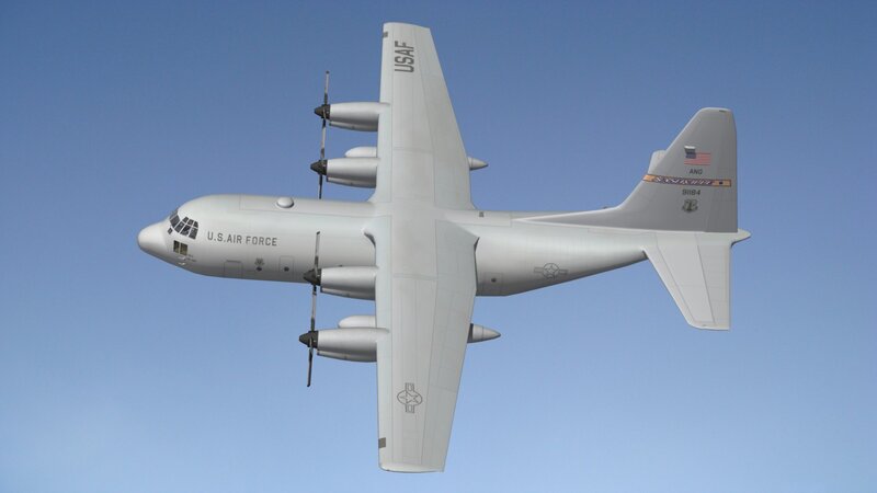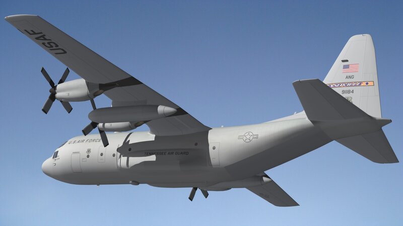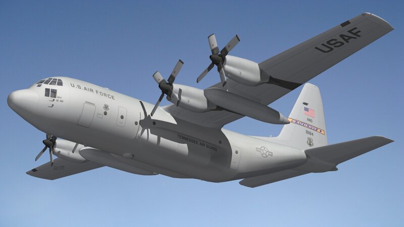 Selecting the object named "C130H" (parents). Change the size, position and rotation of the whole.