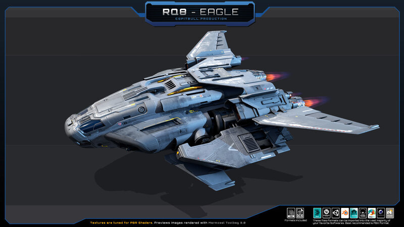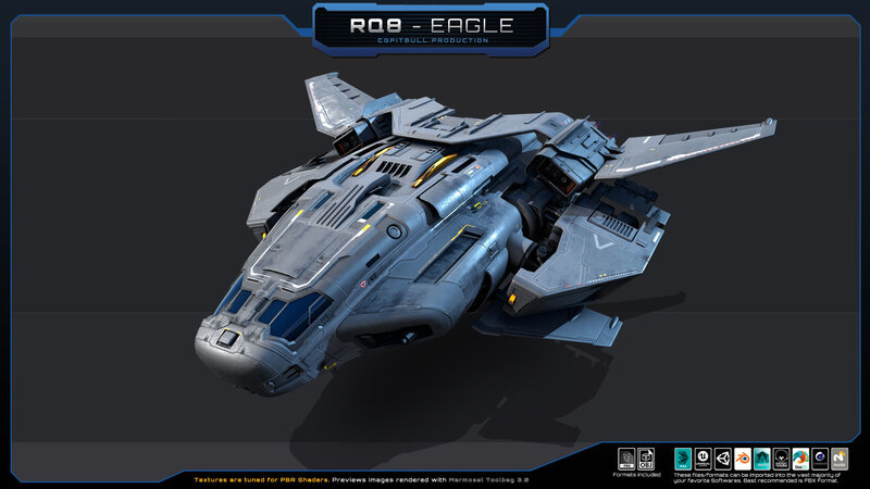 This Original package contains one Sci Fi RQ8 - Eagle / Fighter (not rigged). Model inspired by my Federation Frigate BE2 design, you can find this model in this CGPitbull account (This design is my own concept, does not repeat any existing work. You can use it without a doubt about copyright).