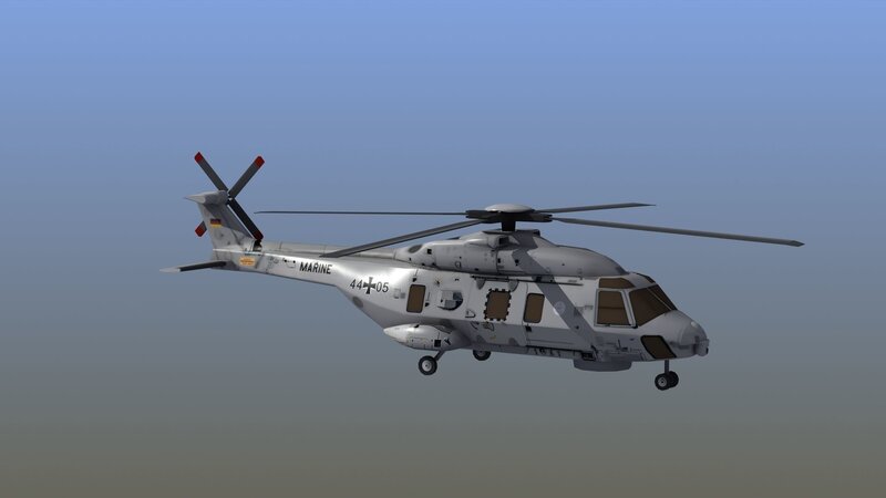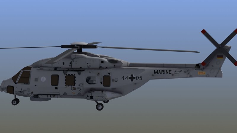NH90 Helicopter LD1, German Navy. Great multipurpose 3D model - ideal for offline rendering or real time uses such as games or simulation.