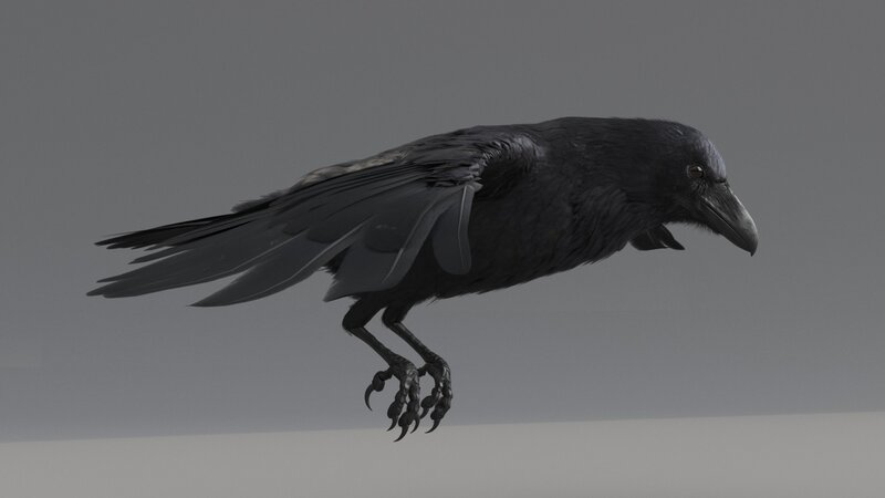 Let us introduce to you our Raven model with the animations. Originally modeled in 3ds max, and using bone tools to create custom rigging, it already has basic animations.
