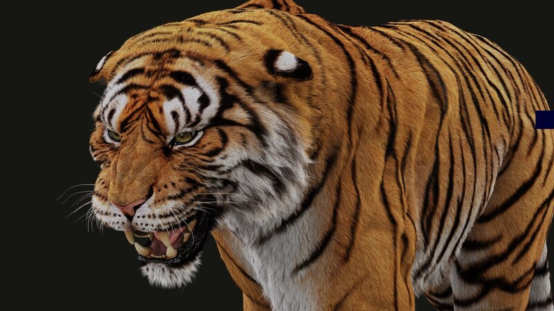 High Detailed Photorealistic Bengal Tiger; UVunwrapped and smoothable, made with Maya. Shave and a haircut for hair.