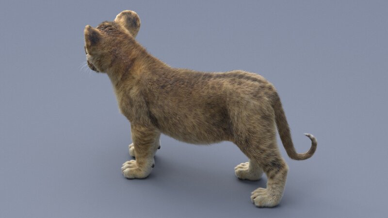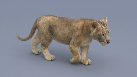 High quality realistic and rigged Lion Cub model with fur, it has an Arnold material with high-resolution textures. Lion Cub model has clean topology and good in one iteration of smoothing.