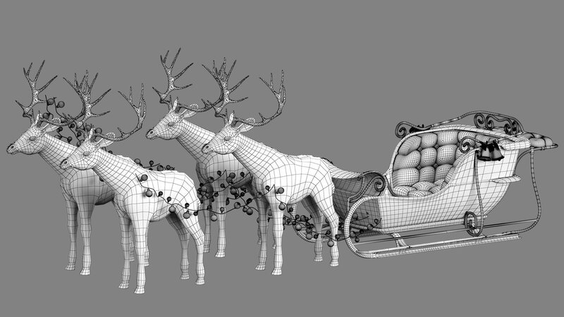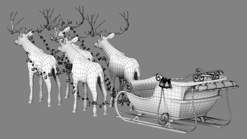 » Santa Claus Sleigh and deer 3D model