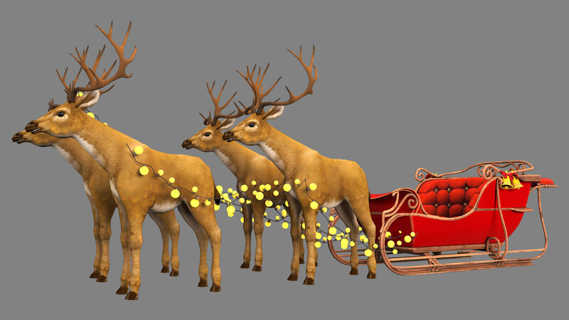 Santa Claus Sleigh and deer 3D model