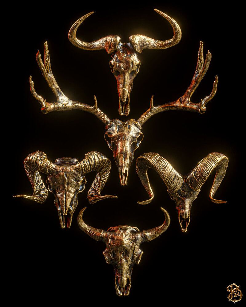 Horned Mammal Skull 3D Model Pack