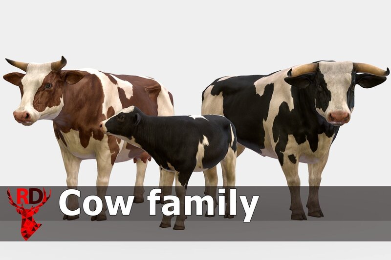 This asset has realistic COW FAMILY models. COW, BULL and CALF models are available.