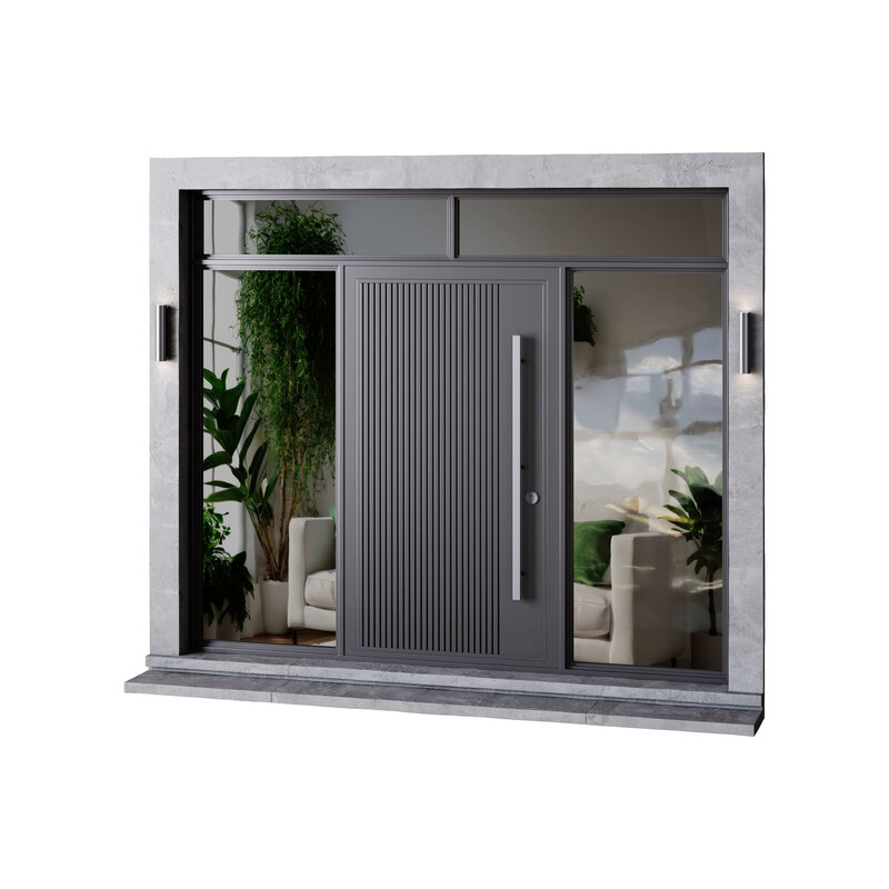 Name: Metal entrance group for home and office Type: model Format: 3Ds Max 2016 Export: FBX, OBJ, MTL Render: Scanline Polys: 38327 Verts: 38470 Units: Millimeters Dimension: 2899.99 x 534.77 x 2469.49 Description: