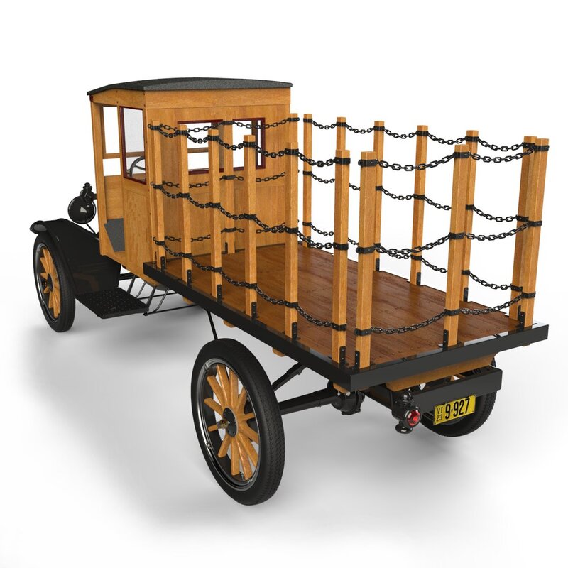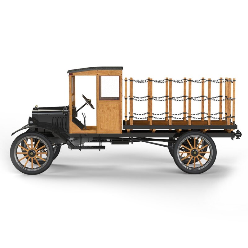 This high resolution 3,263,314 poly CAD model was created in SolidWorks™ from research, field measurements and photographs. It is full-size (1:1) and accurately scaled, with most parts individually modeled. The modeling quality allows for extreme close-ups and rendering. It is ideally suited for hero and foreground shots within early 20th Century period sets and CG’s. There is no motor, only the “basic block” and oil pan that shows under the chassis.
