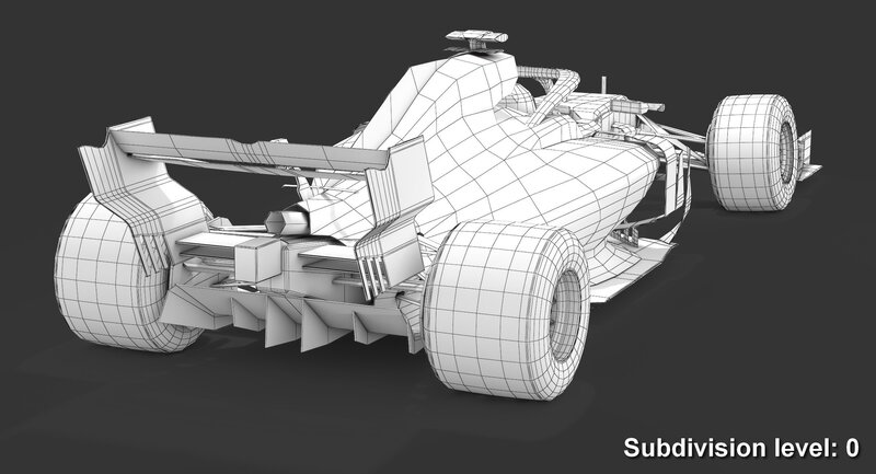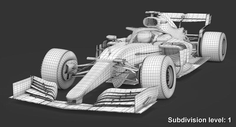 Collection of 3 low-poly subdivision-ready 3D models of Formula race cars (F1, F2, F3) Season 2019 with PBR materials (Specular and Metallic workflows):