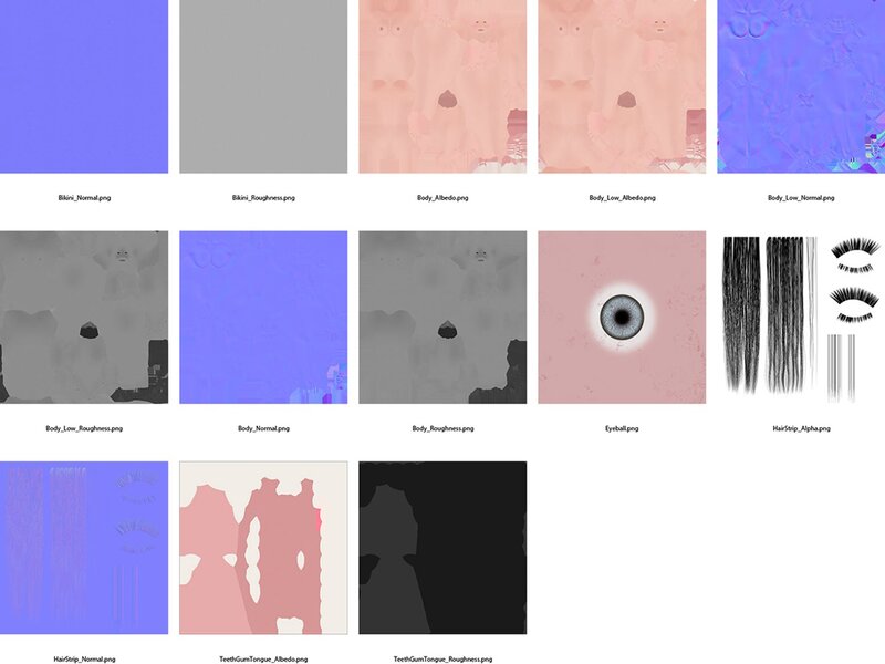 8. Bikini (3,525 verts) 1k normal, roughness.
