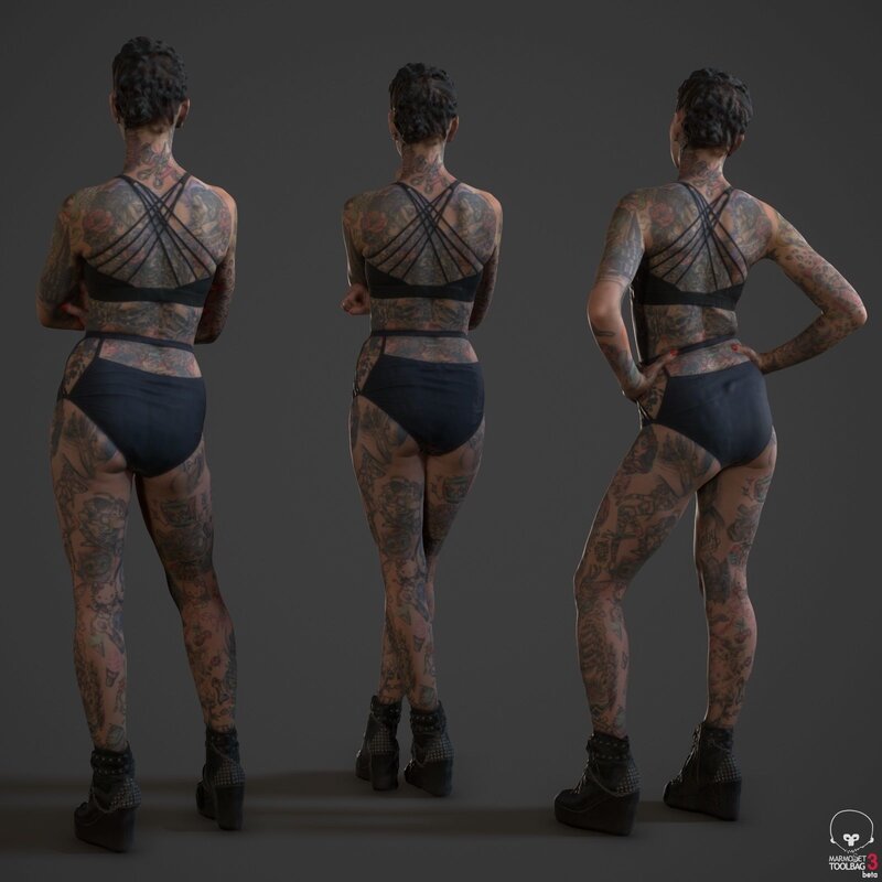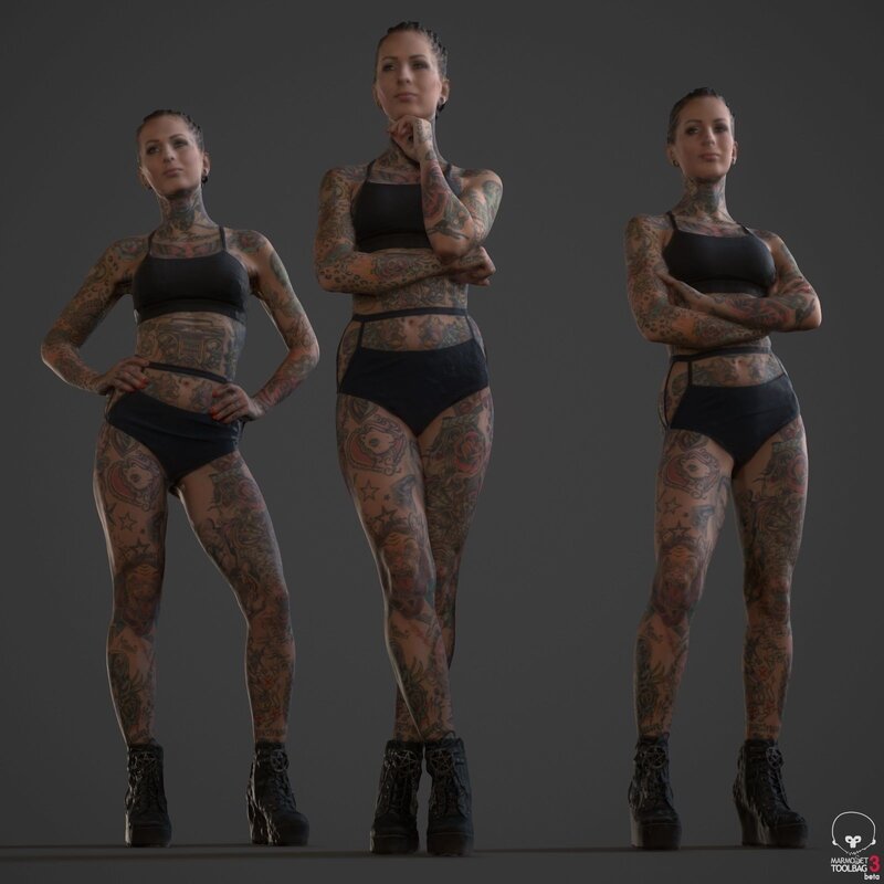 Full body tattoo model Femke, 3D scanned by a photogrammetry capture studio.