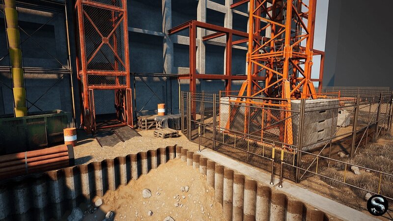Completely finished package for creating a construction site. Includes modular buildings, construction equipment, tower crane, construction tools.
