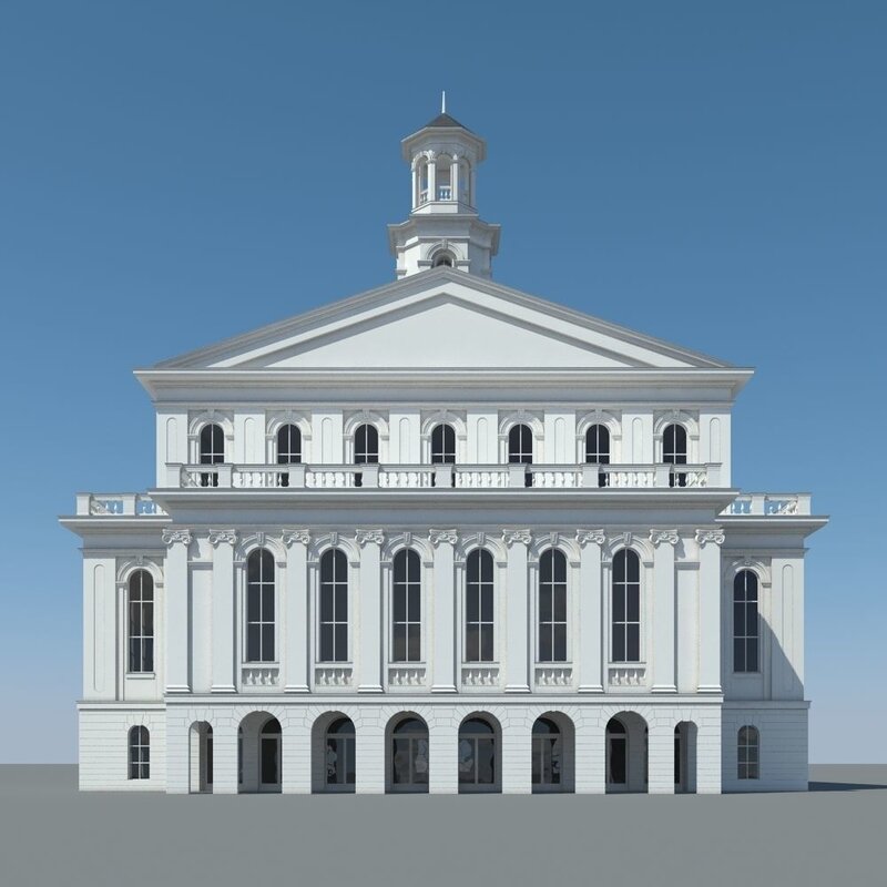 A DETAILED 3D MODEL OF A GENERIC TOWN HALL BUILDING;