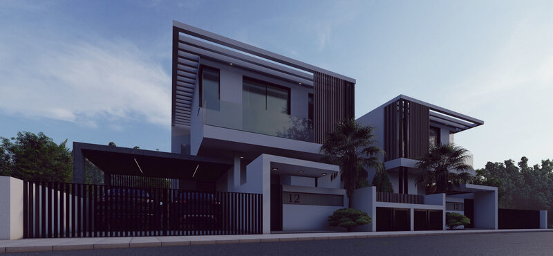 2 Semi-Detached houses exterior 3d modeling exterior and ground floor interior. Lumion file is with materials and settings preset for rendering.