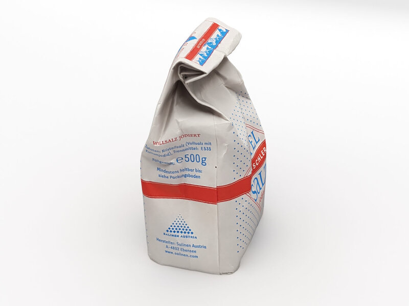 A DETAILED 3D MODEL OF A BAG OF SALT: