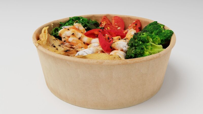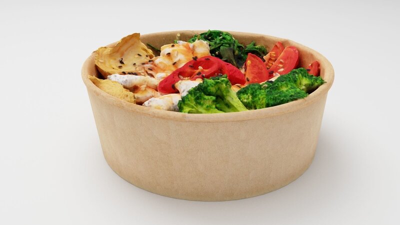 Poke bowl with king prawn or caramote prawn and Teriyaki sauce