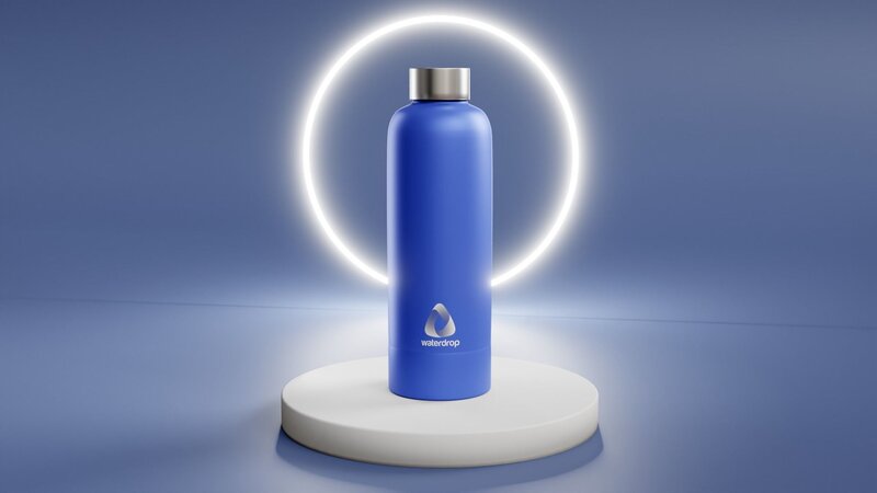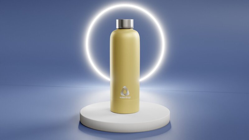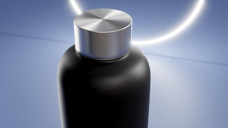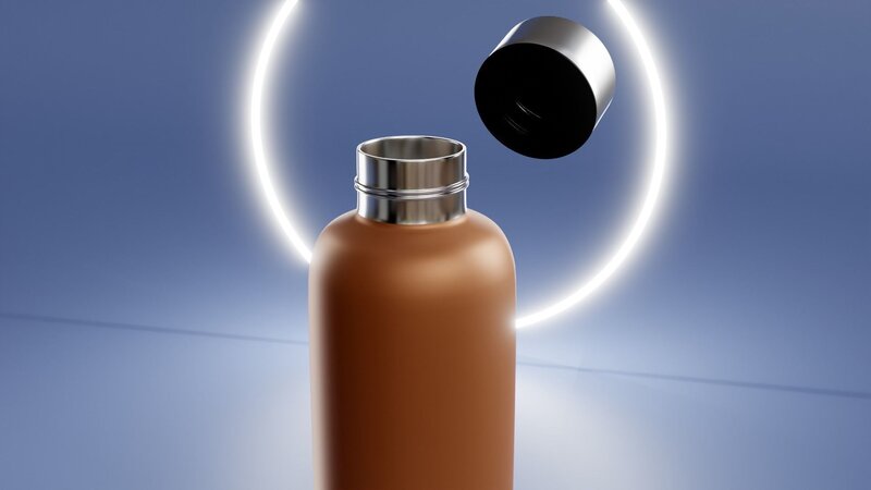 A complete model of Water Metal Bottle with PBR Materials. Include Stand, Light, camera and Compositing settings. Logo not included. Dowload from Free Pik.