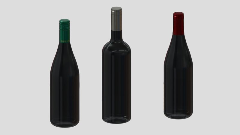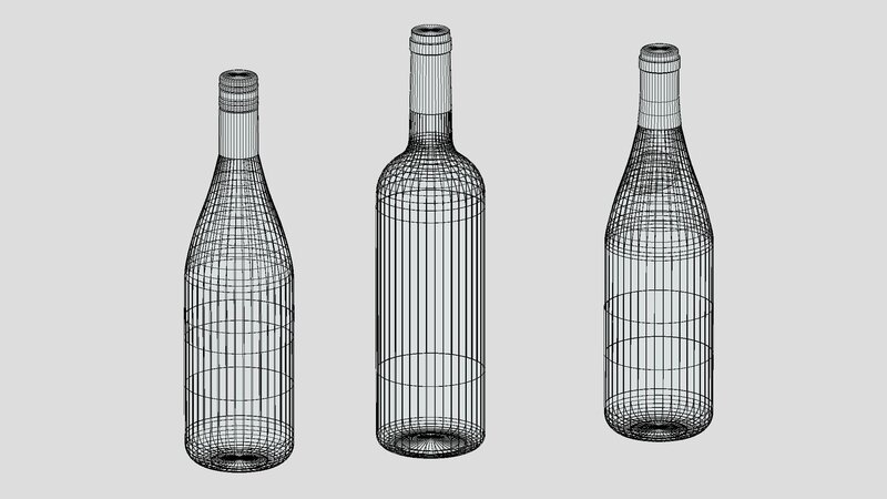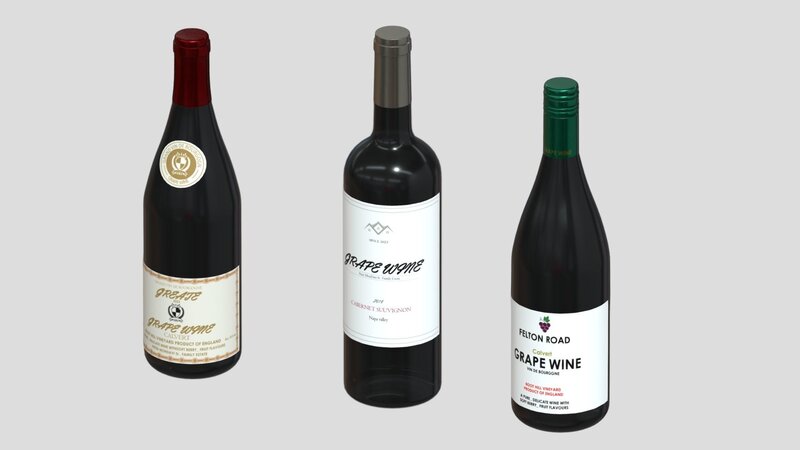 3 Wine Bottles Low Poly PBR Low-poly 3D model