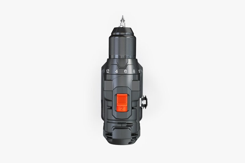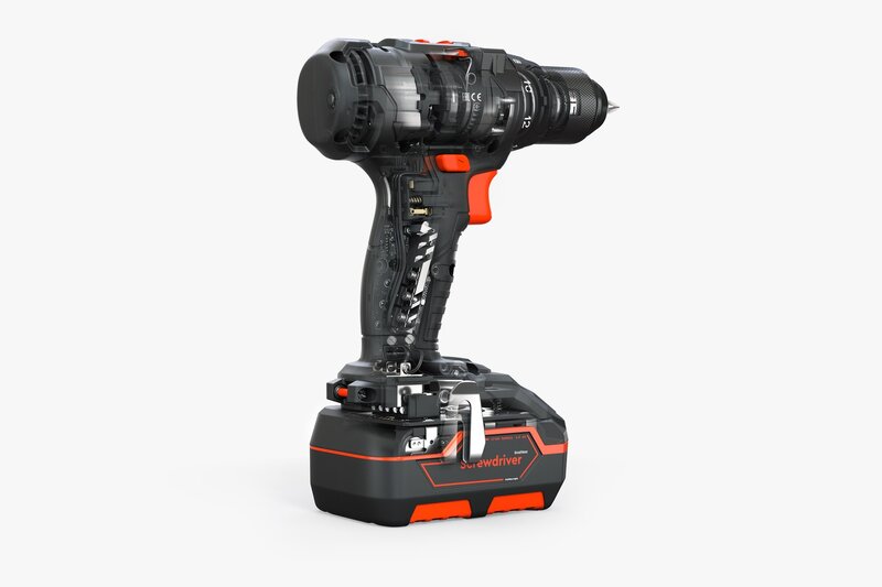 Highly detailed model of a cordless screwdriver, detailing relative to a real instance 100%