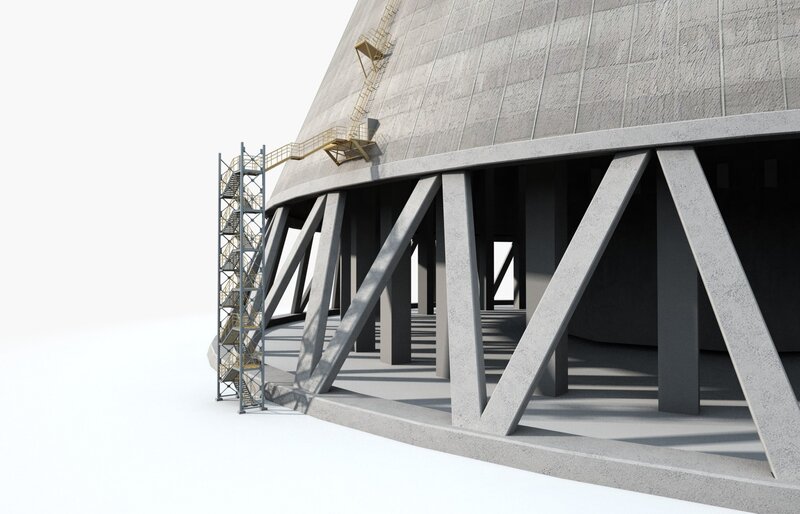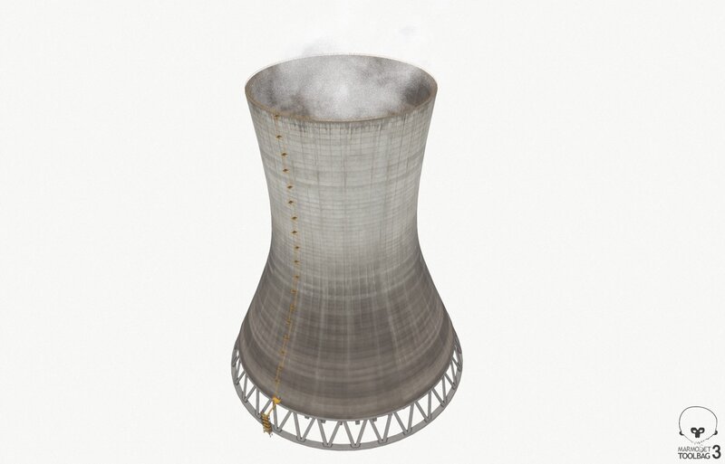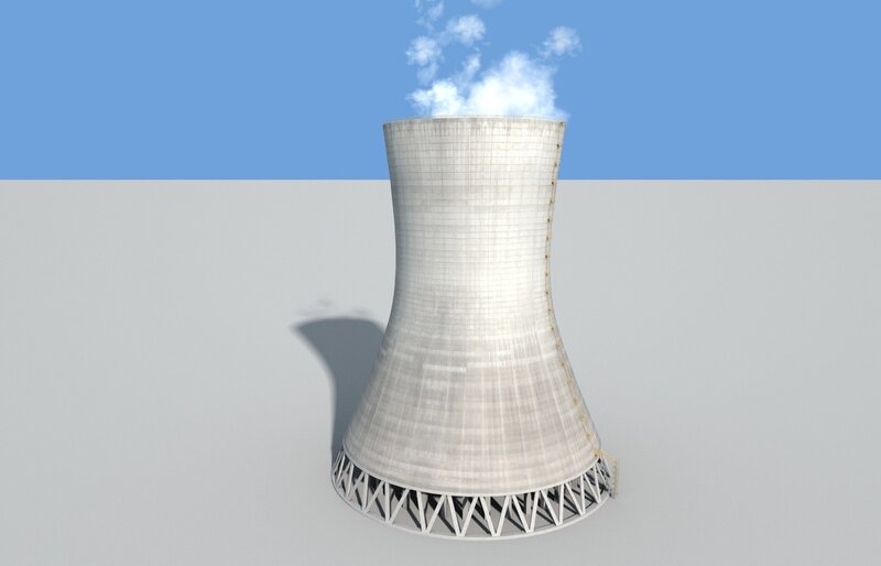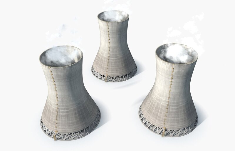 Cooling Tower With Steam Clouds 3D Model