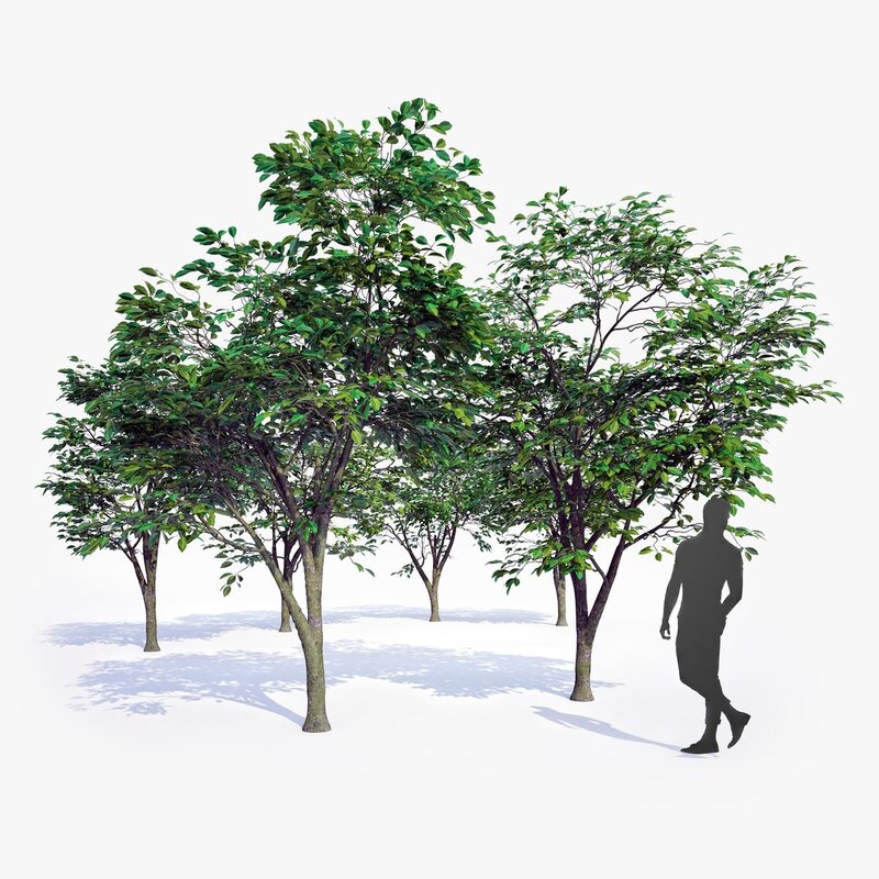 This set contains 6 models of animated (wind ) generic small trees (height aprox 4m.