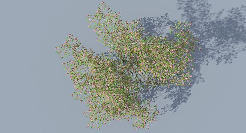 The product comes with seamless tree bark texture and "Chaenomeles Speciosa" flower texture map with alpha channel for opacity.