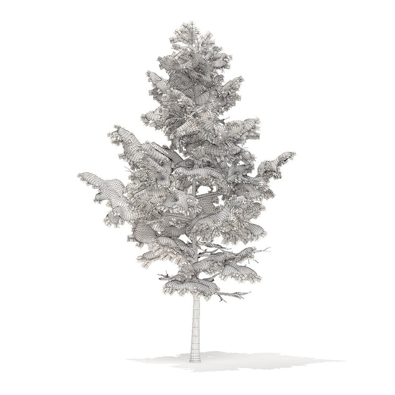 Pine tree with snow 3d model. Height: 5.1m. Compatible with 3ds max 2010 (V-Ray, Mental Ray, Corona) or higher, Cinema 4D R15 (V-Ray, Advanced Renderer), FBX, OBJ and VRMESH.