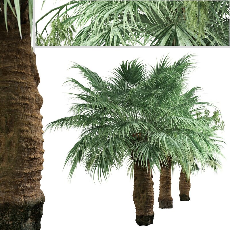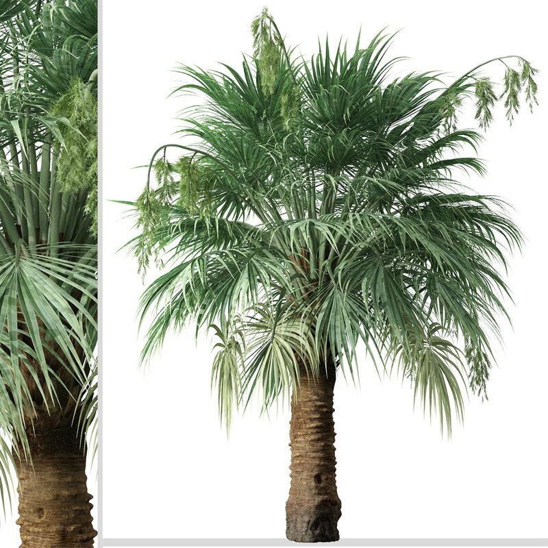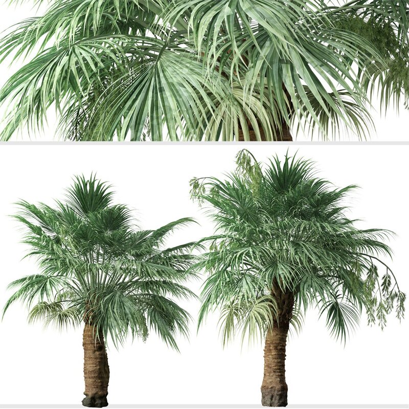2 different Blue Hesper Palm trees in the scene.
