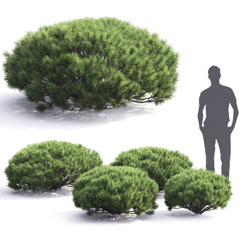 Set of four dwarf pine bushes