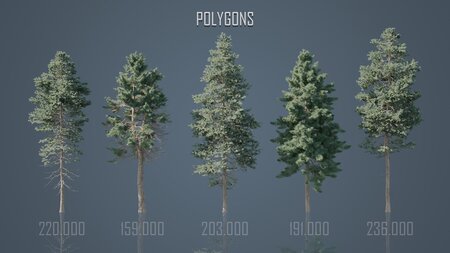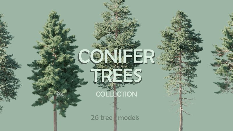 This is a collection of 7 Conifer Trees pack with total of 26 Conifer Trees. All trees are well detailed and consist of ~150.000 polygons each.
