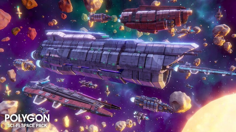 A low poly asset pack of Space ships, characters, props, weapons, FX, and environment assets to create a Sci-Fi themed polygonal style game.