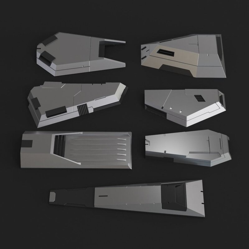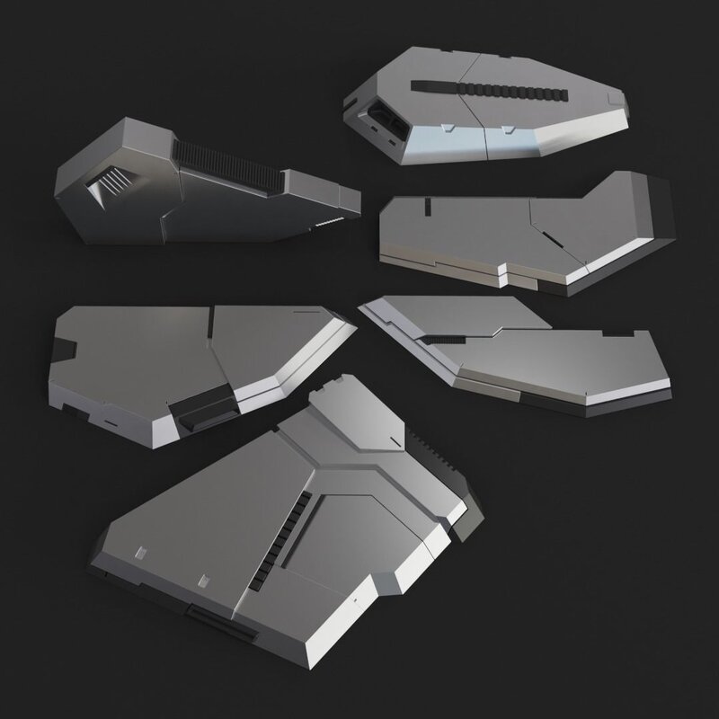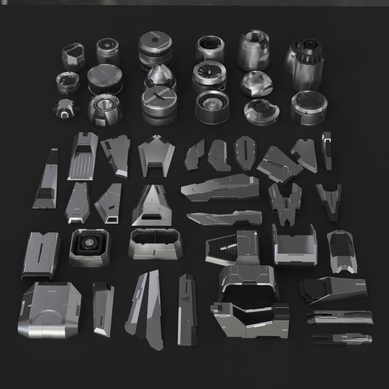 You can use this kit to create fast concepts, dress up your mecha or sci-fi models or scenes.