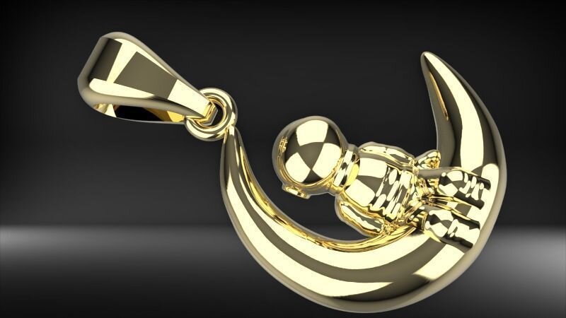 Astronaut moon pendant This STL file is ready for 3D printing, Please look at the pictures for more information. All dimensions and weight for the pendant are in the pictures. This model was created in Zbrush and has a polygonal geometry. The model's geometry is mesh-based and is not in Rhinoceros Nurbs format. It was imported into a Rhino 3dm file. It is created for 3D printing and is ready for 3D printing production. Please check the pictures for more information.